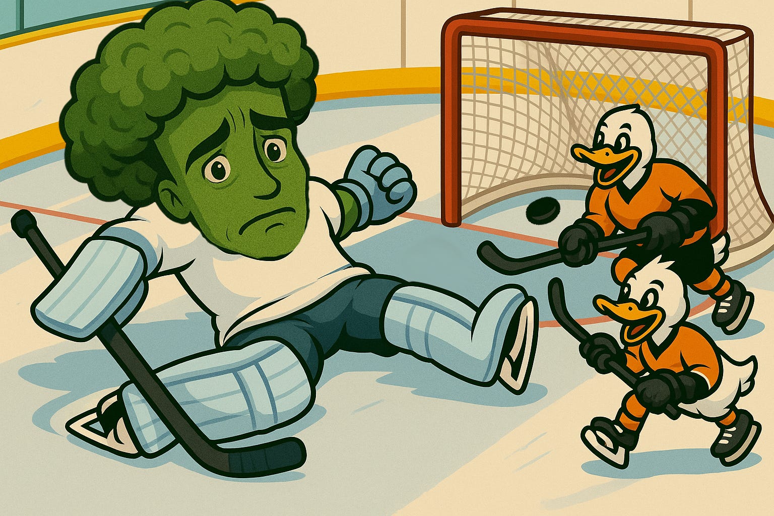 I love my mom. I love my sister too. And she loves Veggie. But here’s the hard truth, and I have to be honest with you all: he’s been a big disappointment this season. You don’t need a photo of a wide-open net in overtime to know it.