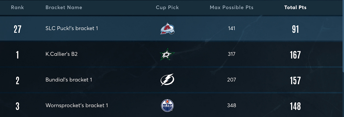 🏆SLC Puck Stanley Cup Bracket Challenge Update