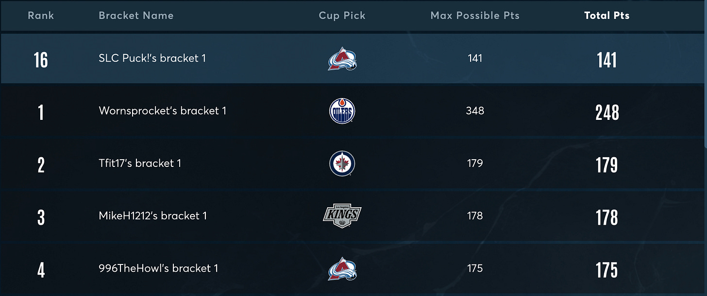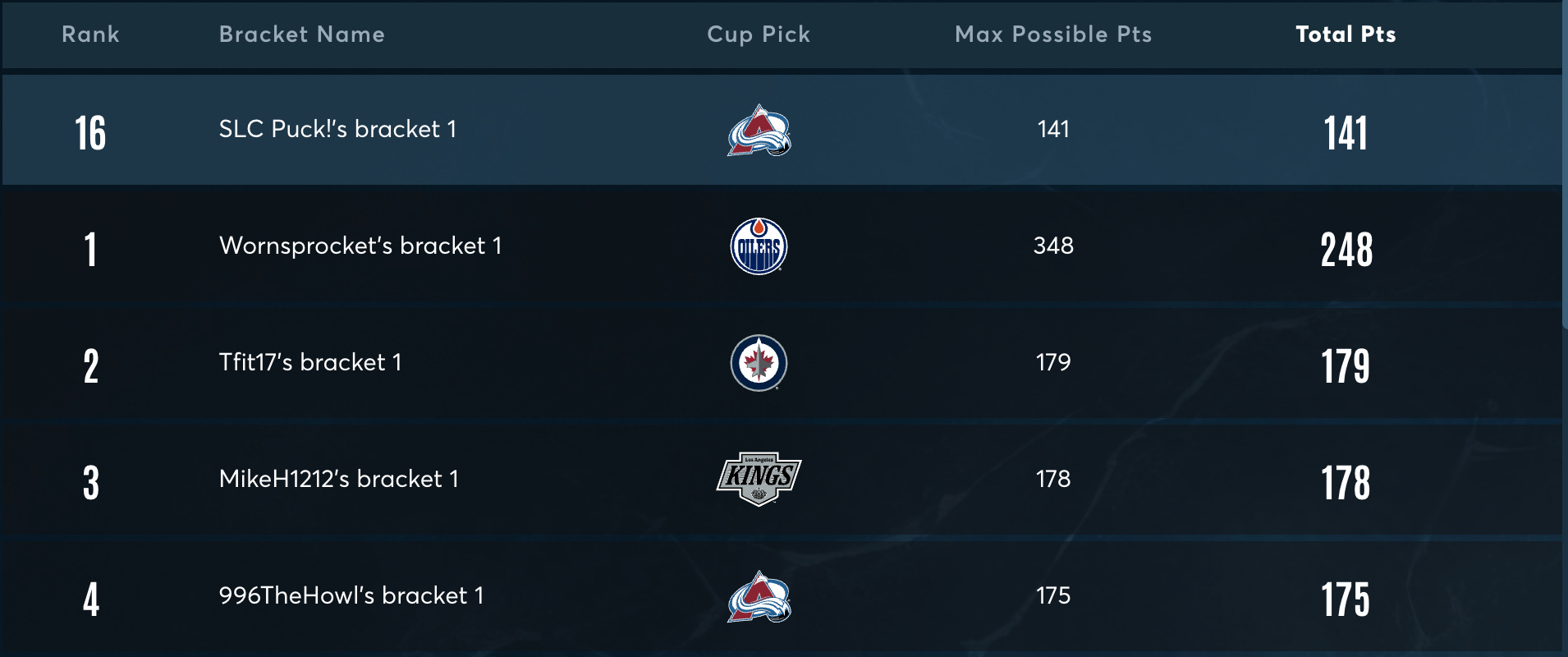 🏆SLC Puck Stanley Cup Bracket Challenge Update