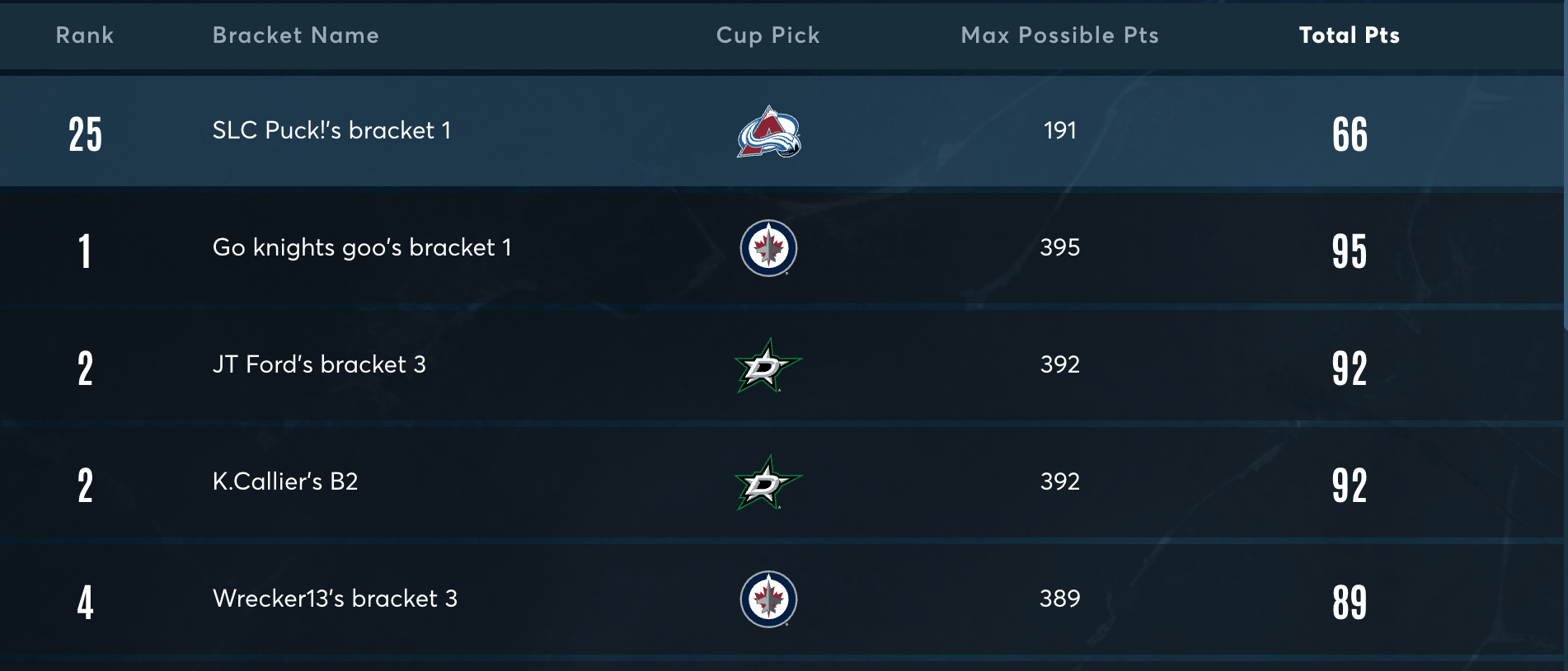 🏆SLC Puck Stanley Cup Bracket Challenge Update